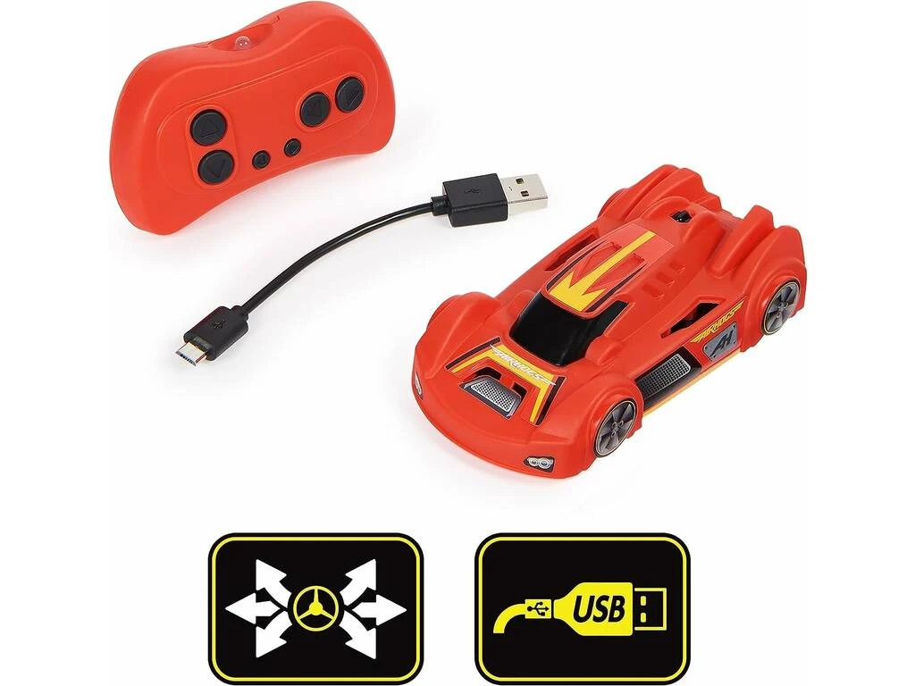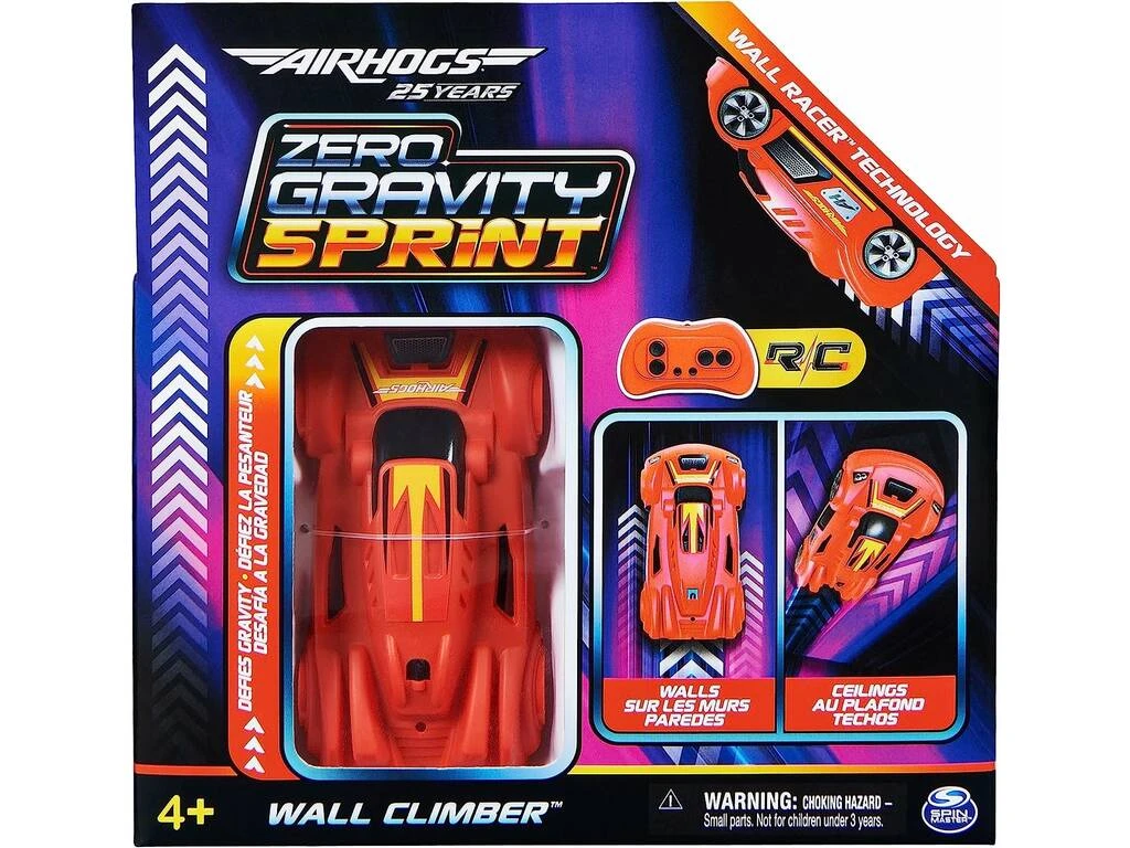 Incluye: 1 vehículo Wall Climber Zero Gravity Sprint de color rojo, 1 control remoto de color rojo, 1 cable USB de carga, pegatinas e instrucciones.