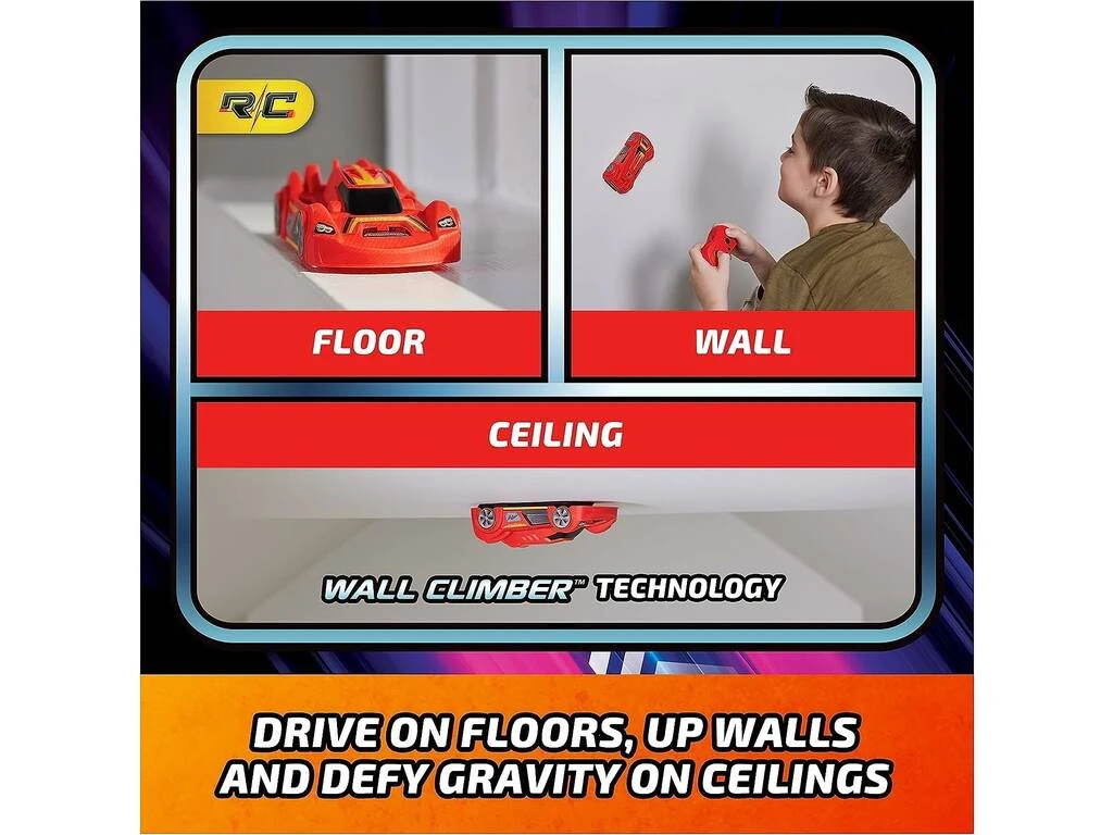 Desafía a la grvedad junto a este alucinante vehículo RC, toa el control de todos sus movimientos y escala paredes, acelera en rectas, circula por techos y mucho más. Todo es posible junto al nuevo Wall Climber de Airhogs y todas sus funciones.