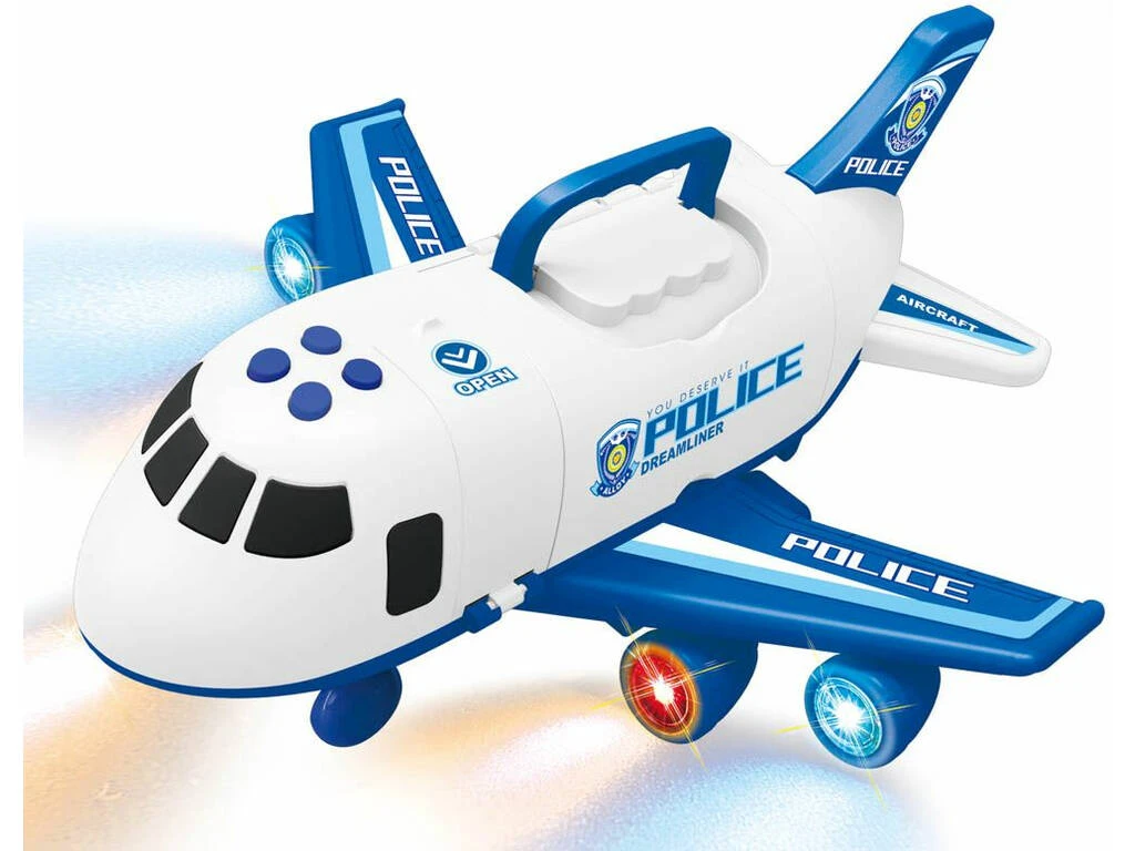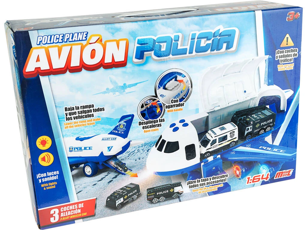Avión Policía Maleta Porta Coches Con 3 Vehículos Y Accesorios