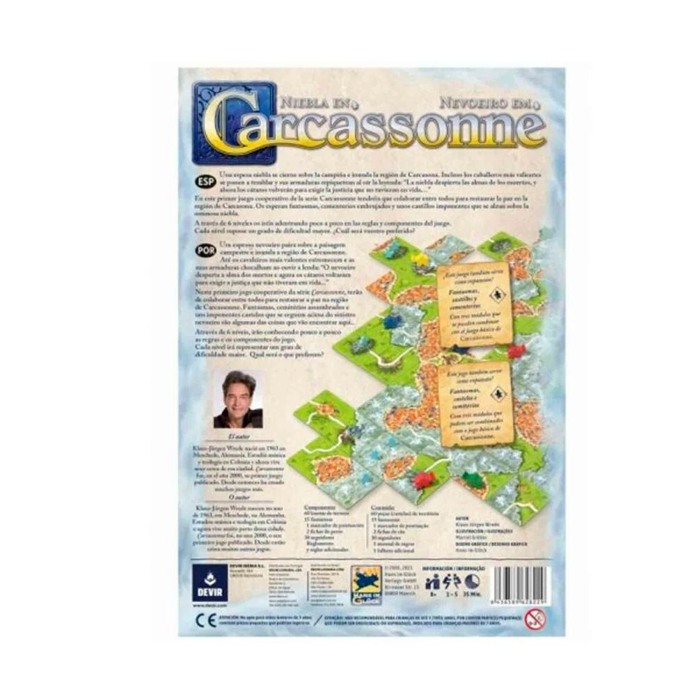 Niebla en Carcassonne es un juego de mesa que trae nuevas y divertidas formas de jugar en el universo Carcassonne. Una espesa niebla esconde aullantes almas atormentadas que vuelven en busca del descanso eterno. ¿Podréis apaciguarlas? Un nuevo juego totalmente independiente y al mismo tiempo compatible con el juego base ¡No te lo pierdas!