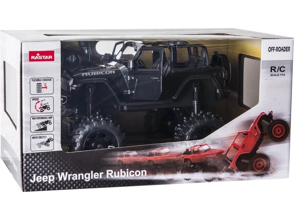 ¡Siente la fuerza de un vehículo único y con una potencia brutal! ¡Al llevarte a casa el nuevo Coche Radio Control Jeep Wrangler Rubicon Negro!