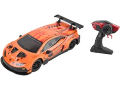 Incluye: 1 coche radio control Lamborghini Huracán GT3 de competición color naranja y 1 control remoto.