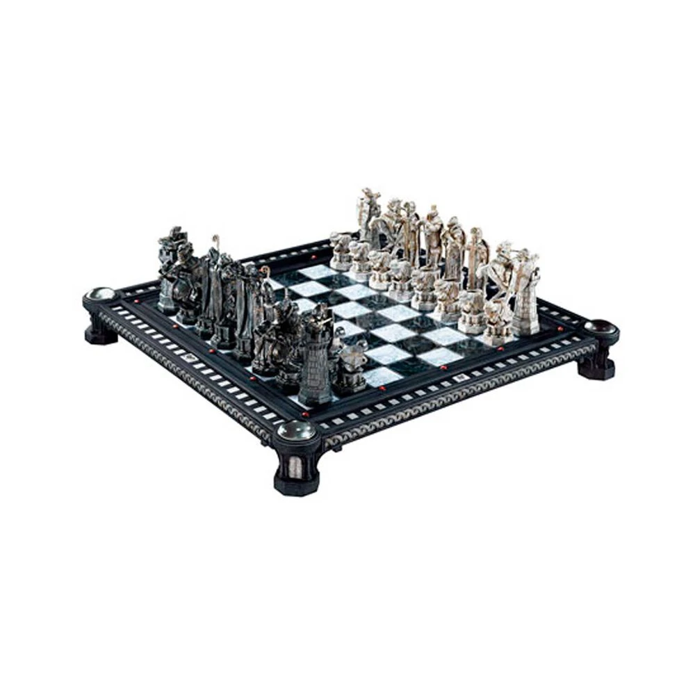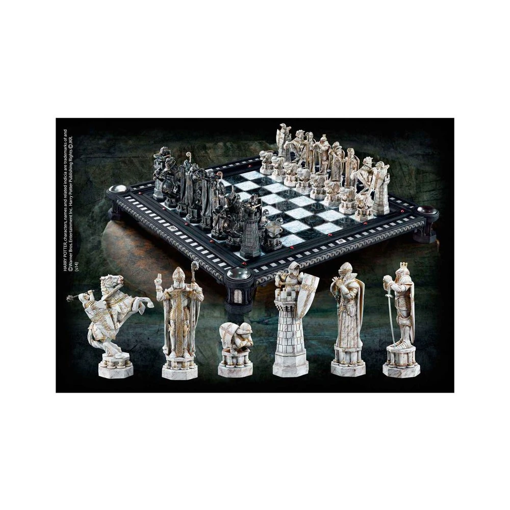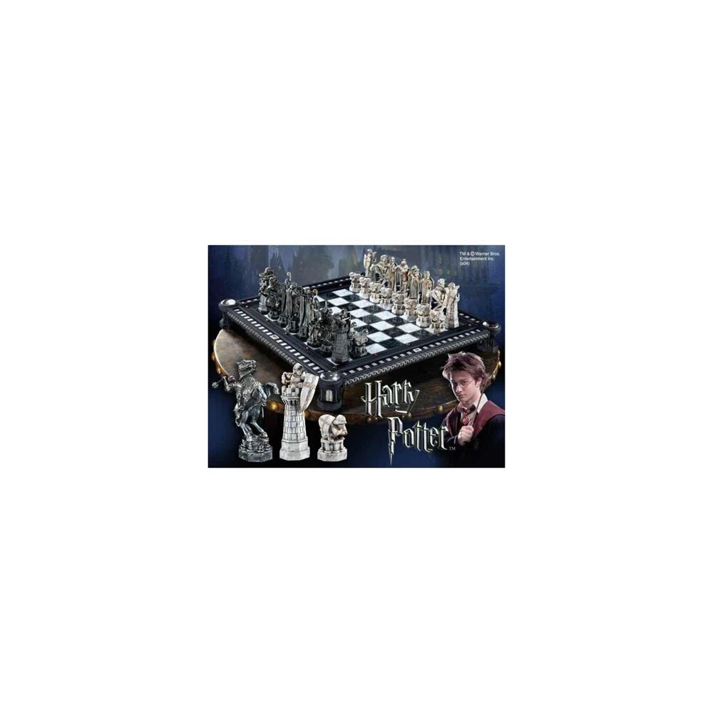 Magnífica réplica del ajedrez en el cual se transforman los héroes de la película Harry Potter y la Piedra Filosofal. Cada une de las 32 piezas han sido finamente elaboradas y miden de 6,50 a 14 cm de alto. El tablero mide aproximadamente 50×50 cm. No recomendable para menores de 3 años, ya que contiene piezas pequeñas que podrían provocar asfixia en caso de ser ingeridas por el niño/a.