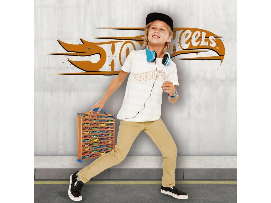 Hazte con este nuevo maletín 3 en 1 de tu marca de coches a escala preferida, llénalo con tus Hot Wheels y disfrutalos allá donde vayas. Separa las piezas y crea circuitos con looping y mucho más. ¡Une el resto de tus pzas Hot Wheels Track System para añadir emoción al juego.