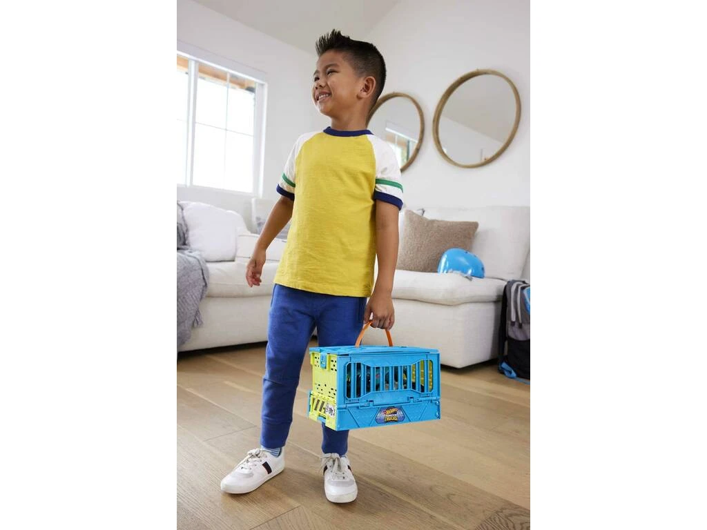 Incluye: 1 vehículo Mega Wrex de color verde y azul con ruedas de goma y 1 jaula de color verde y azul convertible en playset de acrobacias.