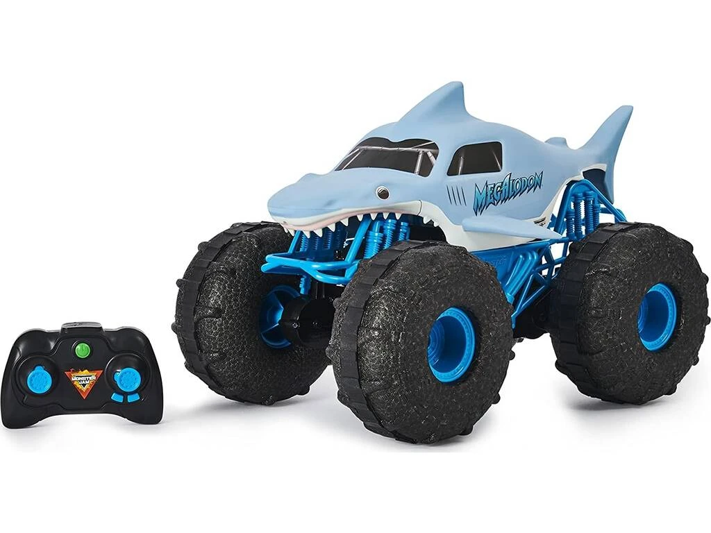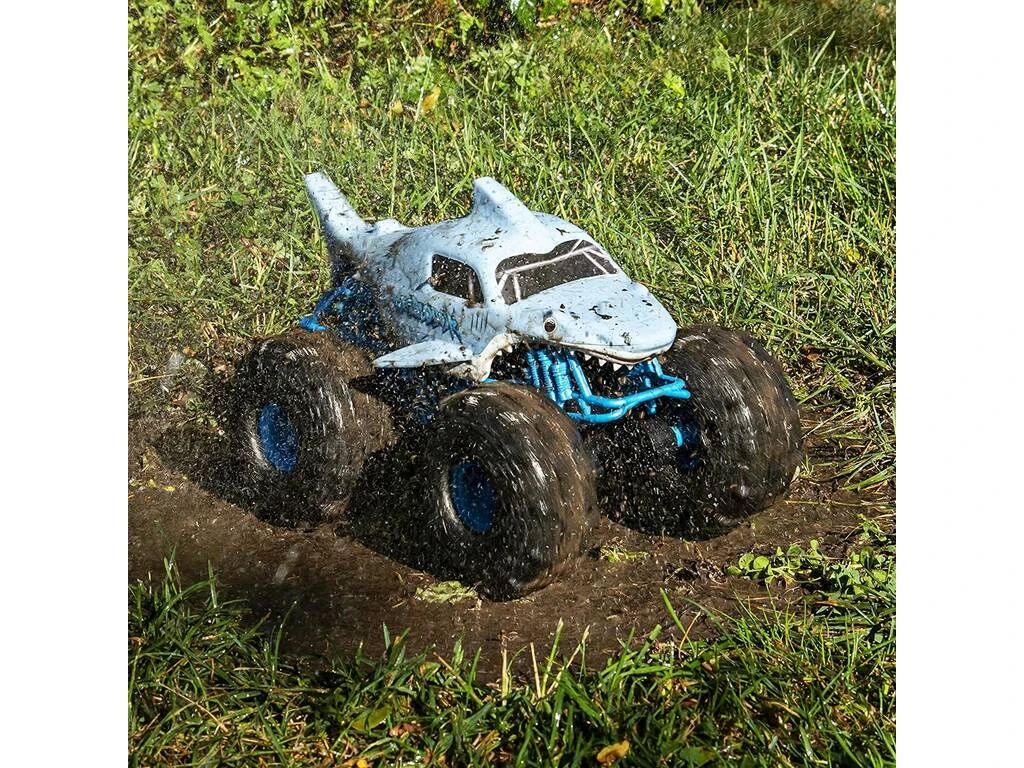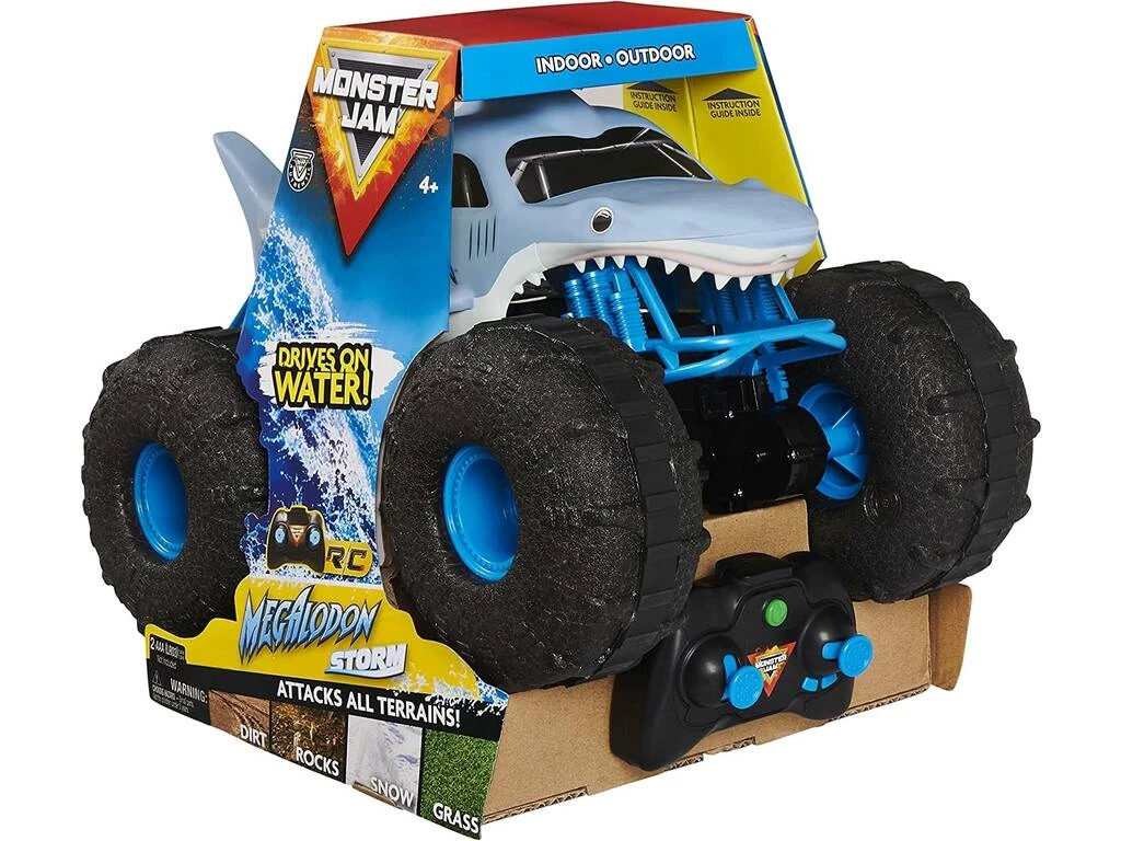¡Por tierra, asfalto y agua! ¡Disfruta del nuevo Monster Jam Radio Control Megalodon Storm de Spin Master!