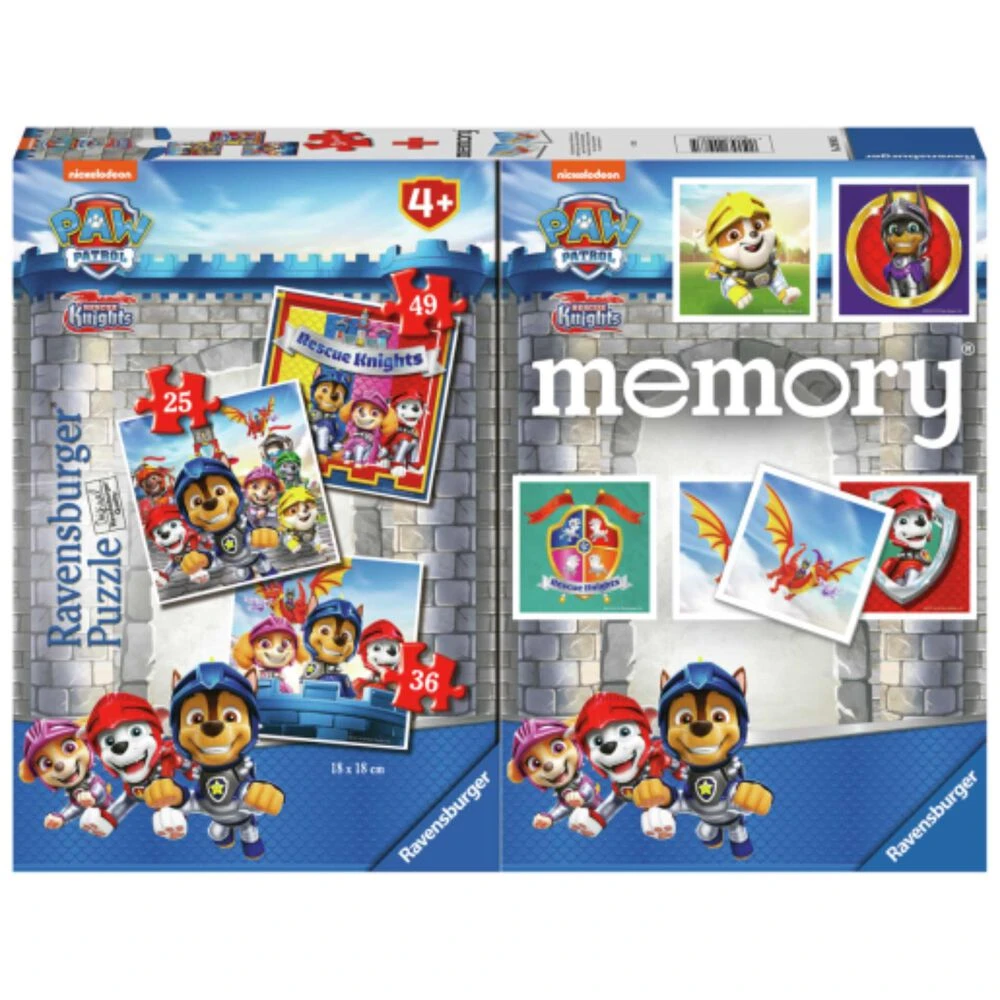 Set compuesto por juego de memoria y puzzle progresivo decorado con los personajes de Patrulla Canina.