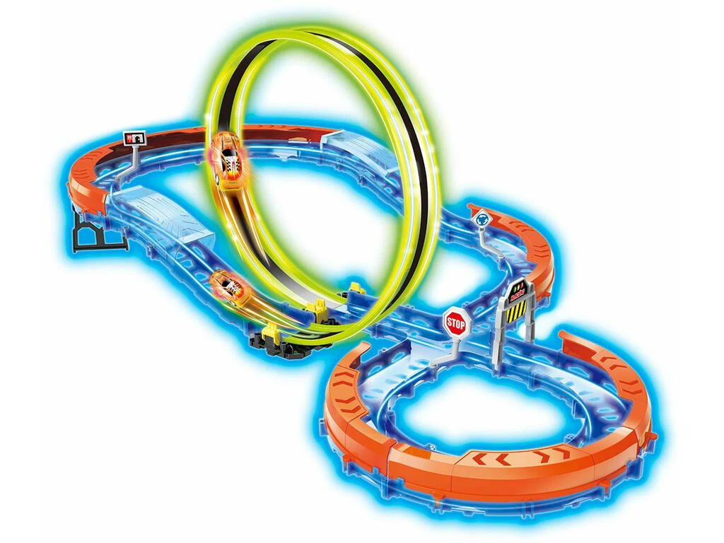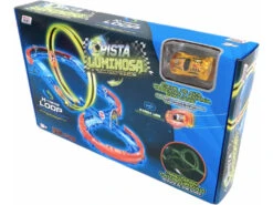 Disfruta de la Pista Coches Brilla en la Oscuridad con 1 Coches y hazlo en la oscuridad gracias al brillo de su pista y la estela que ira dejando el coche.
