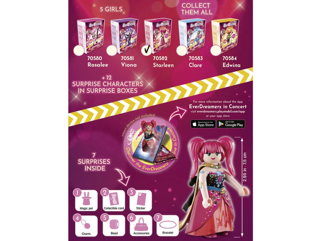 Gracias al amuleto mágico que contiene podrás llevar a las amigas de Starleen al maravilloso y glamuroso mundo del espectáculo como es el del la música. Dispone de la función AR integrada para que te puedas acercar todavía más al mundo de la música de EverDreamerz. Solo tienes que escanear la carta con un smartphone y obtendrás una experiencia única.