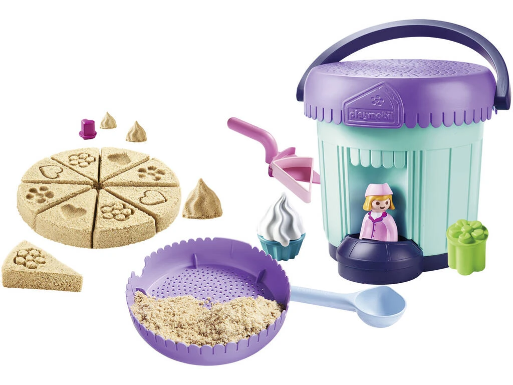 Gracias al cubo de pastelería de playmobil podrás jugar y conocer la textura de la arena, mojada, húmeda o seca y desarrollar tu imaginación y creatividad creando y dibujando todos los bollos, pizzas, tartas cupkakes y todos las cosas ricas que se te puedan pasare por la cabeza. Esto no es todo porque también dispone de un sello para que puedas sellar y firmar tus creaciones e inventos, personalizandolos gracias al sello.