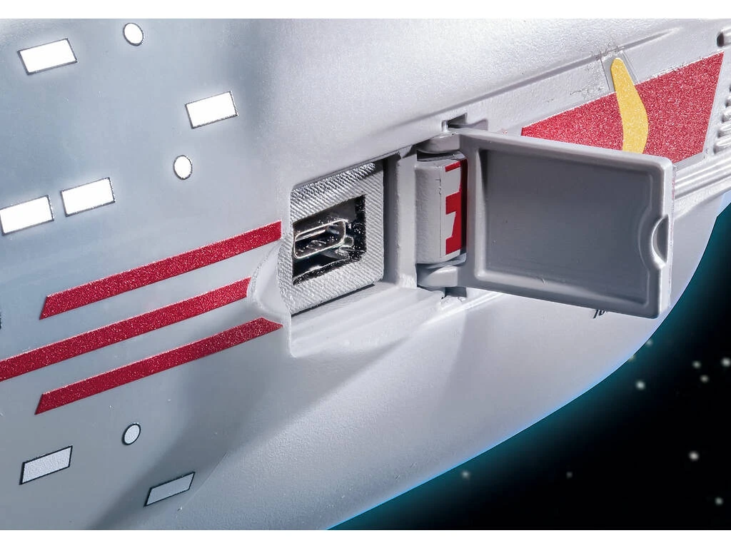 La nave incluye efectos de sonido y luz, que le aportan realismo y espectacularidad, una nave legendaria junto a la que explorar hasta la última frontera del espacio. Forma parte de esta tripulación gracias a Playmobil y esta joya de coleccionismo para los seguidores de Star Trek. ¡Deja que te teletransporte Scotty y descubre todo sobre el espacio junto a la U.S.S. Enterprise!