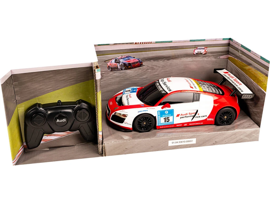 Incluye: 1 Audi R8LMS Performance Blanco Radio Control y 1 mando radio control.