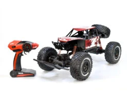 Incluye: 1 Todoterreno Iron Claw-4WD Red Metal, 1 Rueda de repuesto, 1 Mando radio control, 1 Batería de 7.4V y un cable USB.