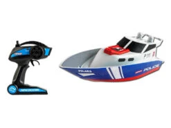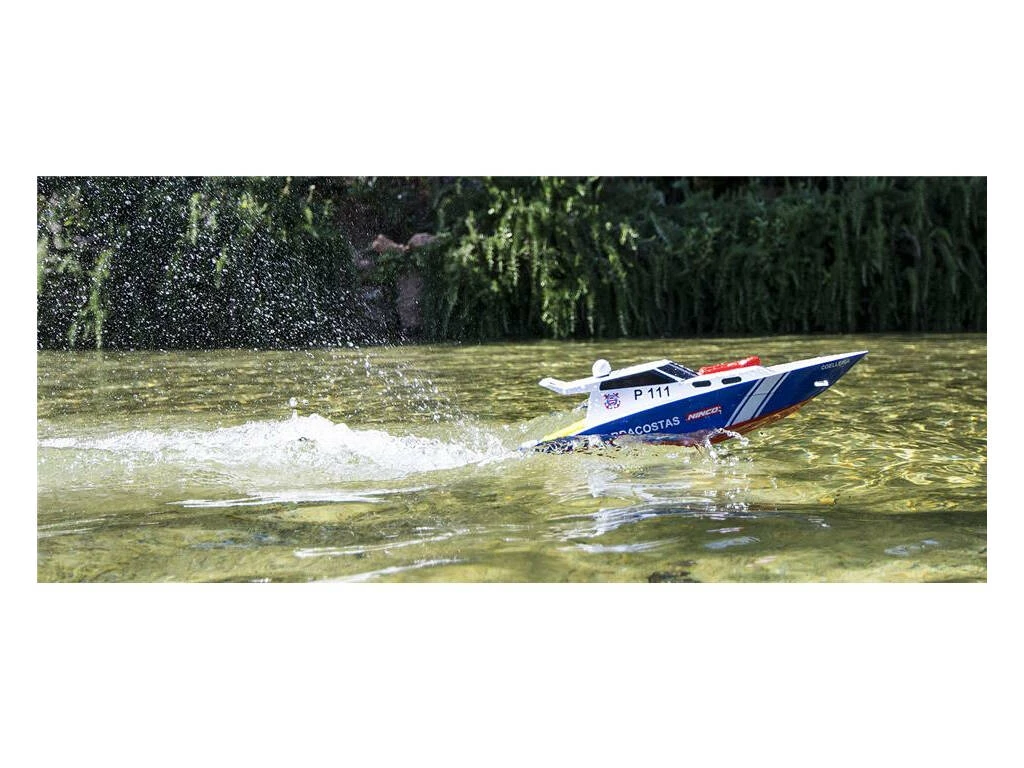 Realizada en material de gran calidad y resistencia, esta lancha de policía es de color azul y blanca con detalles reales de un guardacostas de verdad. Esta lancha con dos motores está preparada para recorrer sobre agua dulce a toda velocidad.