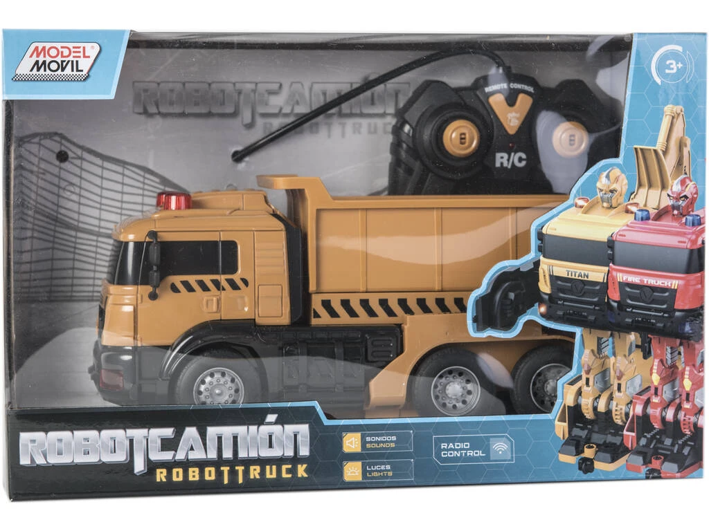 Hazte con este genial vehículo con función control remoto, un camión volquete que se convierte en robot con solo pulsar un botón. Tu eliges entre conducir un gran camión volquete y luchar junto a un robot listo para la acción.