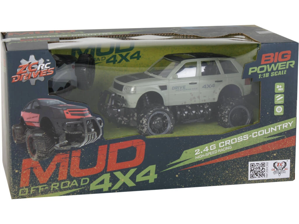 Incluye: 1 coche 4×4 RC, 1 mando RC, 1 batería de 3,6V y 1 cargador.
