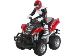 Incluye: 1 vehículo radiocontrol Quad Cross Country de color rojo con piloto y 1 control remoto para el vehículo.