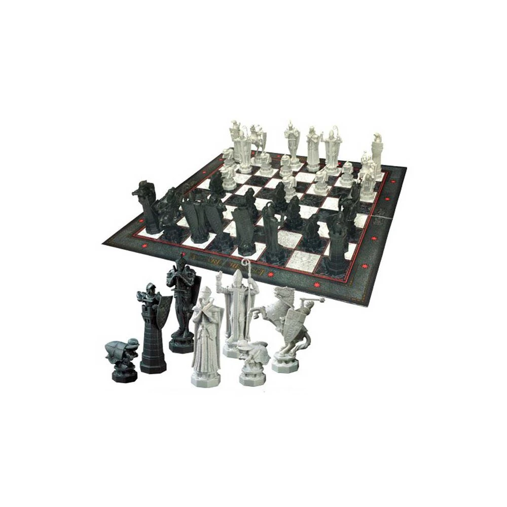 Autorizado oficialmente por Warner Brothers y fabricado por The Noble Collection te presentamos la réplica del ajedrez de los hechizos del maravilloso mundo de Harry Potter. El juego incluye piezas de ajedrez y tablero de juego. Las 32 piezas de ajedrez están perfectamente esculpidas y miden de 5 a 12 cm. El conjunto se completa con un tablero de 47 x 47 cm. Un magnífico regalo para los fans de Harry Potter y del ajedrez. ADVERTENCIA: No recomendable para menores de 3 años, ya que contiene piezas pequeñas que podrían provocar asfixia en caso de ser ingeridas por el niño/a.