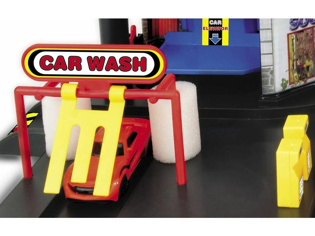 Disfruta jugando con este divertidísimo y completo parking de 4 plantas situado en el centro d ella ciudad. El lugar perfecto para aparcar tus coches de juguete cuando vas de compras. Además, al salir del aparcamiento tendrás servicio de lavado, el coche saldrá como nuevo.