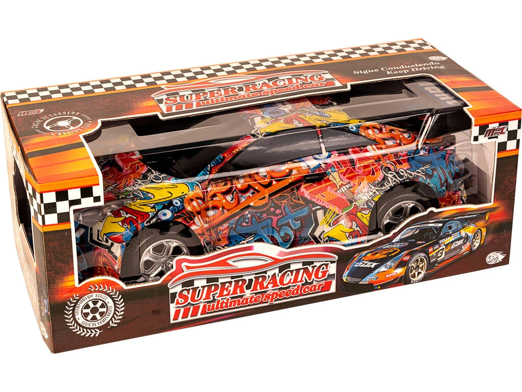 Incluye: 1 vehículo de fricción Racing Car Graffiti.