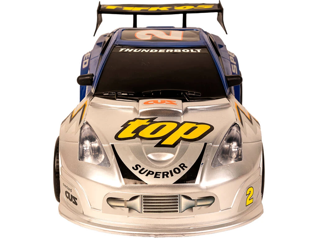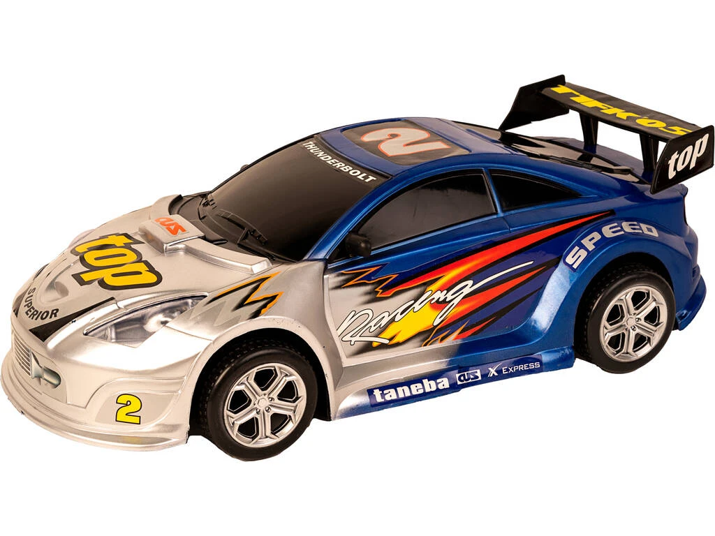 ¡Siente la emoción del rally al volante del veloz Thunderbolt azul! ¡Un coche rápido como un rayo!