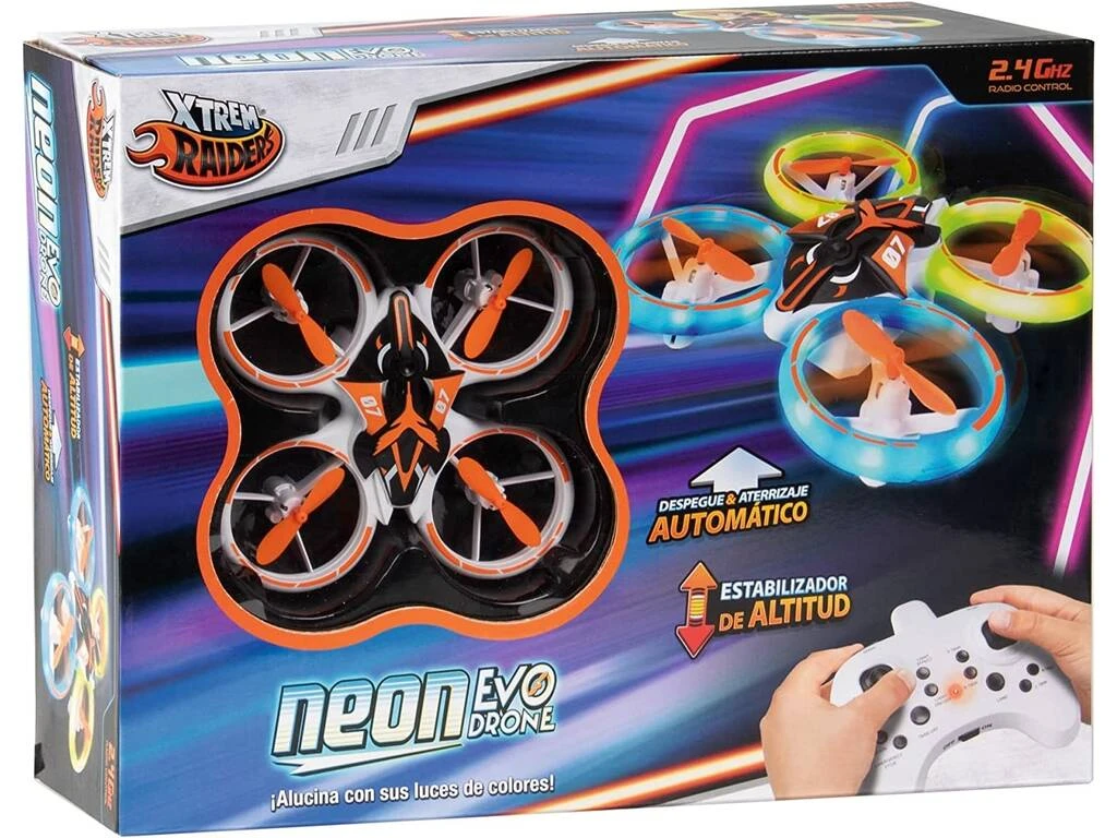 ¡Sorprende a todos con altos vuelos llenos de acción y luces de colores! ¡Al hacerte con el nuevo Xtrem Raiders Neon Evo Drone de World Brands!